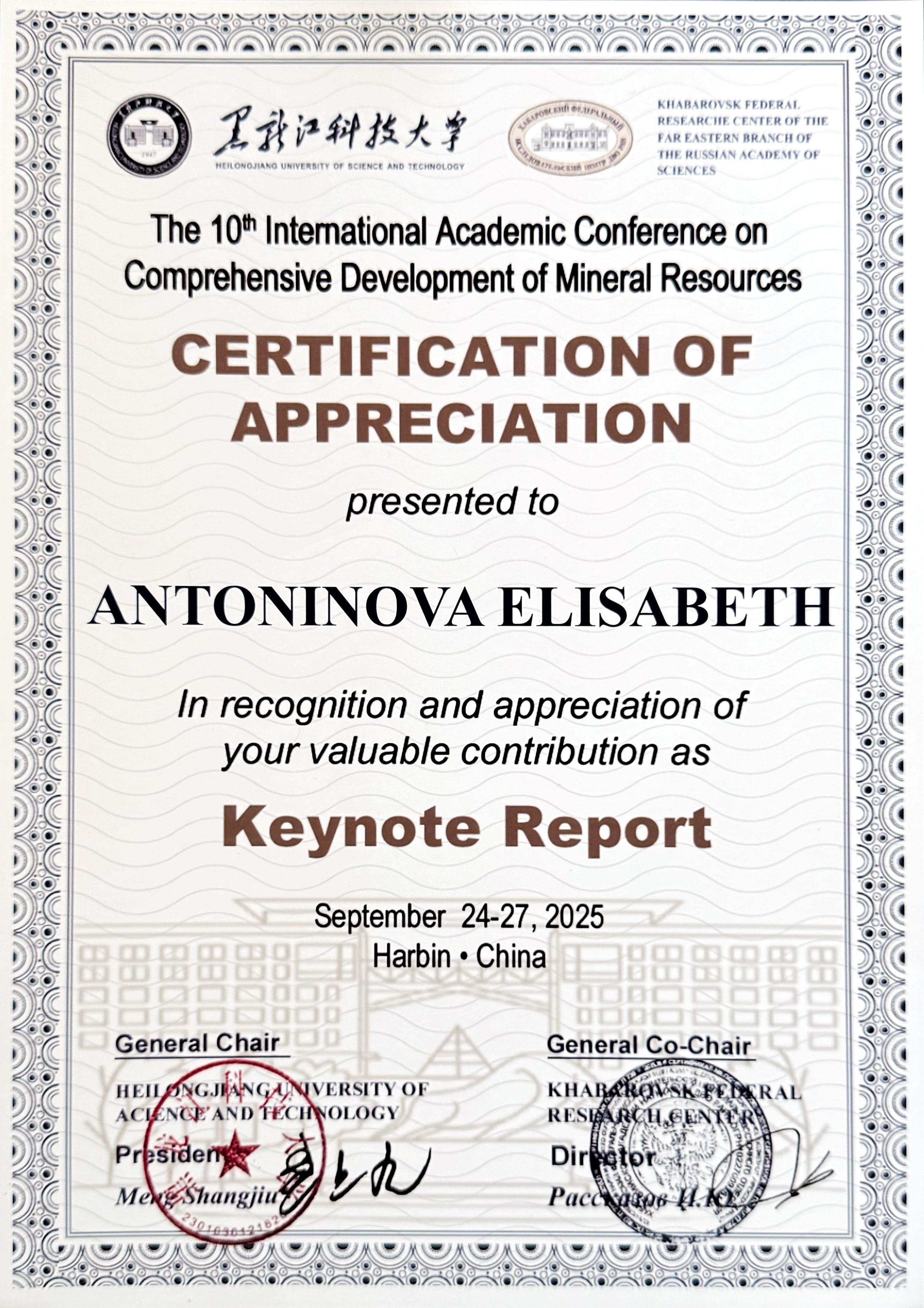 Студентка шестого курса специальности «Обогащение полезных ископаемых» Елизавета Антонинова приняла участие в X Международной научной конференции «Проблемы комплексного освоения георесурсов», которая проходила в городе Харбин (КНР).