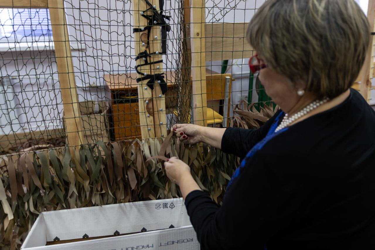 Сразу после открытия экспозиции в аудитории 2002 добровольцы УГГУ провели для всех желающих мастер-класс по плетению сетей. Напомним, что изготовлением защитных накидок и сбором гуманитарной помощи для российских военных в университете занимаются уже несколько лет. За свой самоотверженный труд активисты были отмечены на IV Форуме волонтеров СВО, который проходил в Екатеринбурге в начале февраля. Директор ИДПО УГГУ Андрей Лёгостев, специалист ИДПО Ирина Болтенкова, водитель Николай Давыдов и студенты Александр Вирц (гр. ГСД-21) и Илья Петрожицкий (гр. ПБ.ш-23-2) получили благодарственные письма от Свердловского регионального отделения Всероссийского комитета поддержки президента России В.В. Путина. А заведующую лабораторией кафедры горного дела Елену Риве наградили не только благодарственным письмом, но и медалью «За содействие СВО».